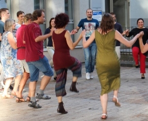 Wir laden ein zu gemeinsamen Kreistänzen mit dem generations- und nationalitätsübergreifende Weltmusik Ensemble „Grenzen.los“ | Tänzerische Leitung Gabriela Jüttner, Dipl.-Tanzpädagogin, | Musikalische Leitung Rainer Buschmann, Musikschule Bochum | Termin Sonntag, 27.08.23, ca. 17 - 18 Uhr | Ort Innenhof der Pauluskirche, Bochumer Innenstadt |