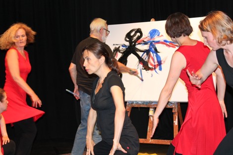 Figur - Form - Schwung - Linie - Experiment - Expressivität Ausgewählte Bilder von H.D. Gölzenleuchter werden von Tanzenden des Zentrums für Tanz und Bewegung unter der Leitung von Gabriela Jüttner in Bewegung umgesetzt. Das Bild - der Tanz. Von Erdgeschoss bis Kellergewölbe auf Zeche Lothringen: An unterschiedlichen Orten tanzen und improvisieren mit spontan entwickelten Scores! | Leitung Gabriela Jüttner, Dipl.-Tanzpädagogin, Mettler-based Creative Dance Teacher | Termin Sonntag, 19.02.23, 11 - ca. 12 Uhr | Ort in den Austellungsräumen des Bochumer Kulturrates, Lothringer Str. 36 c, Bochum-Gerthe |